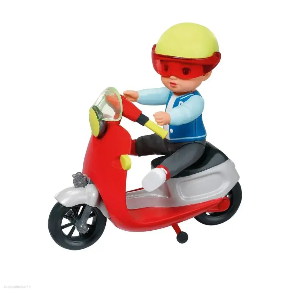 Dávejte pozor! Malý Simon se řití zpoza rohu na svém zářivě červeném skútru. Dokonce i helma dokonale ladí s ležérním městským stylem této mini panenky