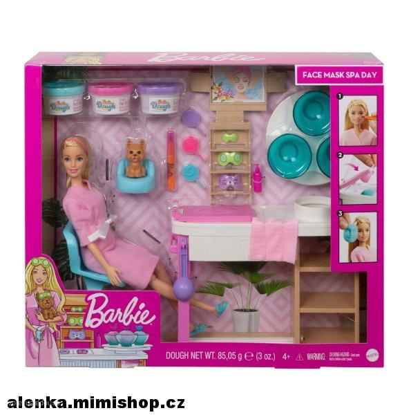 Připoj se k panence Barbie® a jejímu štěňátku a nechte se rozmazlovat v salónu krásy. V tomto herním setu najdeš herní prostor jako ve skutečném salónu a nechybí ani více než 15 doplňků. Použij přiloženou fixku a vytvoř panence na tváři pupínky a flíčky. Ale ne! Je na čase se o její pleť postarat. Usaď panenku do křesla a nech ji relaxovat, zatímco připravíš pleťovou masku. Je to snadné! Součástí jsou tři tuby s voňavou hmotou a misky pro přípravu. Naplň formičku, stiskni, otevři a můžeš připravenou masku aplikovat. Nezapomeň připravit jednu i pro pejska. Odstraň masku a uvidíš, zda všechny problémy zmizely. Malé holčičky si zamilují pečovat o svou panenku. Barbie® oblékla župan a pantofle a je připravena si užít den plný odpočinku.