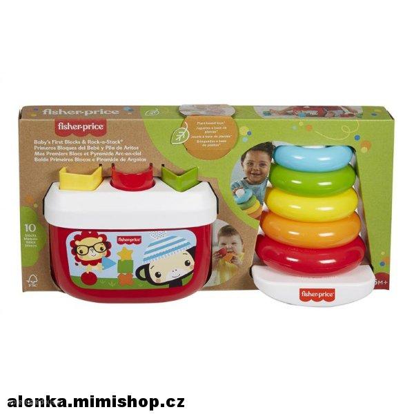 Pod hromadou hvězdiček, čtverečků a trojúhelníčků dítě radostně nachází ten poslední a nejdůležitější kroužek. Tento Fisher-Price® dárkový set spojuje dvě klasické dětské hračky vyrobené z rostlinných materiálů. Otevřete zábavný kbelík plný Prvních dětských kostek. Obsahuje set 10 barevných, různě tvarovaných kostek, které lze stavět, řadit nebo si s nimi házet během hry. Ikonické Kroužky na tyči obsahují pohybující se základnu a 5 pestrobarevných kroužků, které si může děťátko libovolně brát, skládat je nebo s nimi třást. Tento rozkošný dárkový set pomáhá vašemu děťátku v rozvoji zručnosti, koordinace pohybu rukou a očí a dovednosti řešit problémy.