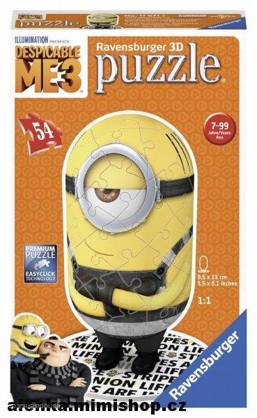 D puzzle v licenci Mimoni. Postavička se skládá z easy click technologie, s tím že puzzle do sebe zapadají bez použití lepidla a postavička poté stojí. Puzzle se dají skládat podle motivu a nebo podle čísel na zadní straně puzzle. Postavička je velká 8,5x13 cm, stojí na podstavci. Balení obsahuje 54 dílků. Věk 7+.