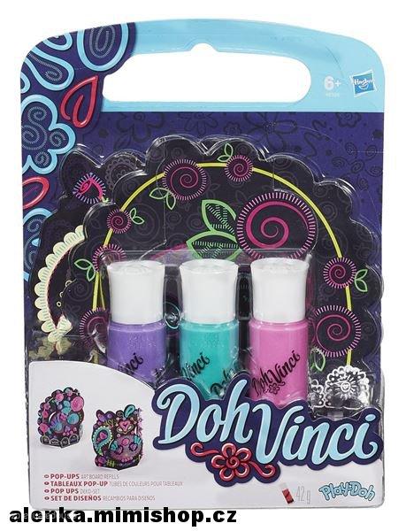 Tvá mistrovská díla získají úplně novou dimenzi díky Doh VinciPop-Ups. Každá tato kreativní deska nabízí jedinečnou možnost dekorování a hodí se jako malý dárek na památku. Vytvoř si svůj vlastní design. Každá sada obsahuje 2 kreativní desky a 3 tuby Doh Vinci.